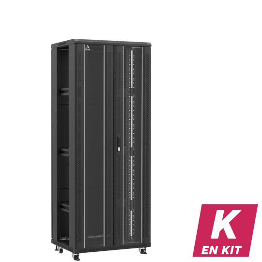 En kit - Baie serveur 42U 800x600x2060mm (LxPxH) 800kg, Porte avant en verre double / Porte arrière pleine, Sans panneaux latéraux