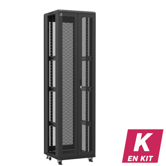 En kit - Baie serveur 47U 600x600x2283mm (LxPxH) 800kg, Porte avant double nid d'abeille / Porte arrière nid d'abeille, Sans panneaux latéraux