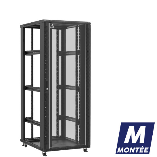 Baie serveur 42U 800x1000x2060mm (LxPxH) 800kg, Porte avant en verre / Sans porte arrière, Sans panneaux latéraux