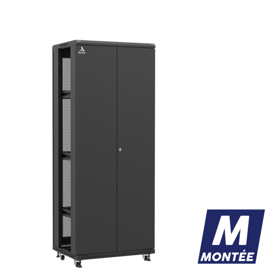 Baie serveur 42U 800x600x2060mm (LxPxH) 800kg, Porte avant double pleine / Porte arrière nid d'abeille, Sans panneaux latéraux