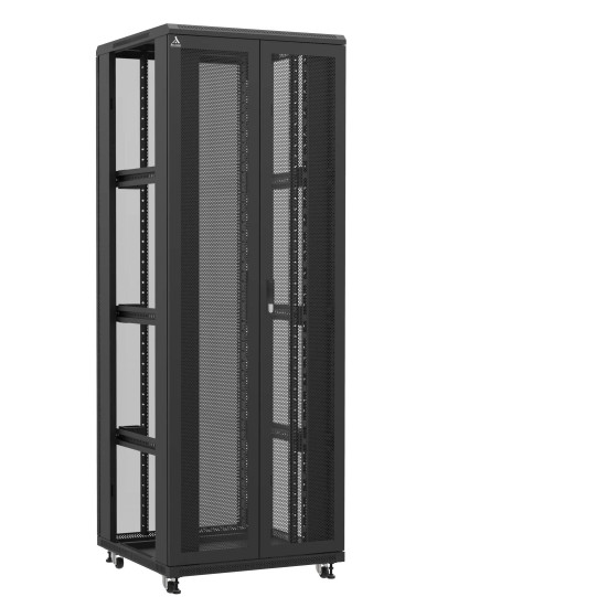 Baie serveur 47U 800x800x2283mm (LxPxH) 800kg, Porte avant double nid d'abeille / Porte arrière en verre, Sans panneaux latéraux