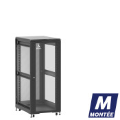 Baie de brassage 27U 600x1000x1407mm (LxPxH) 500kg, Porte avant en verre / Porte arrière nid d'abeille, Sans panneaux latéraux